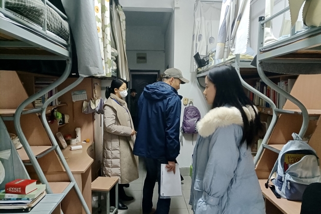 學(xué)院輔導(dǎo)員帶領(lǐng)學(xué)生會同學(xué)對學(xué)院本科生宿舍進行全面檢查,在檢查過程中,從用電安全到內(nèi)務(wù)整理,逐一提醒并做好情況記錄,檢查結(jié)果在各年級進行公布。臨近期末,輔導(dǎo)員老師提醒大家宿舍及時開窗通風(fēng),學(xué)習(xí)上做好復(fù)習(xí)迎考。