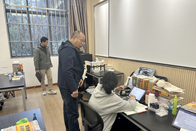 為了及時掌握學(xué)生學(xué)習(xí)生活情況,保證教學(xué)質(zhì)量,扎實推進優(yōu)良學(xué)風(fēng)建設(shè),強化課堂教學(xué)管理,提高課堂學(xué)習(xí)效率,近期外國語學(xué)院黨委書記李榮華、黨委副書記劉伯賢帶領(lǐng)學(xué)院教務(wù)、學(xué)工老師深入課堂、學(xué)生自習(xí)室、學(xué)生宿舍開展“學(xué)風(fēng)建設(shè)與安全穩(wěn)定”檢查工作。
