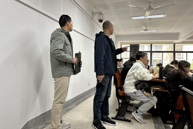學(xué)院領(lǐng)導(dǎo)老師對學(xué)生上課出勤情況及聽課狀態(tài)進行了檢查,通過核實課堂出勤人數(shù),檢查課堂紀律,與任課老師溝通交流等途徑,全面掌握學(xué)生的學(xué)習(xí)情況。課間休息時間,輔導(dǎo)員再次囑咐學(xué)生要按時到達課堂,遵守課堂紀律,提高聽課效率,共同營造良好的學(xué)習(xí)氛圍。在學(xué)院自習(xí)室,學(xué)院黨委副書記提醒大家用電安全,注意開窗通風(fēng),在和備考學(xué)生交流中,鼓勵大家樹立信心,勞逸結(jié)合。