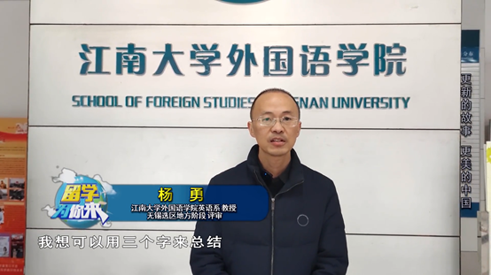 英語(yǔ)系教授、系主任楊勇作為無(wú)錫選區(qū)地方階段評(píng)審,接受了媒體采訪。楊勇從三個(gè)方面重點(diǎn)介紹了該活動(dòng)在無(wú)錫選區(qū)的開(kāi)展特點(diǎn):題材呈現(xiàn)“新”、指導(dǎo)力量“深”、覆蓋范圍“廣”,并建議參賽學(xué)生可以從無(wú)錫的名人、名景及非物質(zhì)文化遺產(chǎn)等角度入手,聚焦本地特色,深入挖掘地域文化及歷史底蘊(yùn),對(duì)江南故事、無(wú)錫故事、中國(guó)故事進(jìn)行立體化講述。