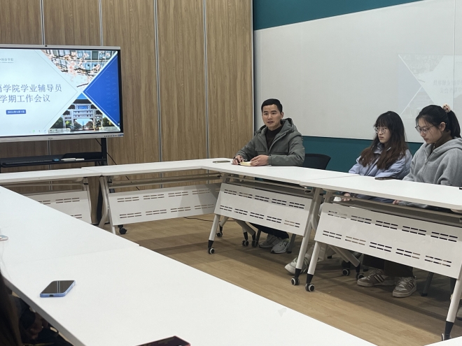 為加強學院學風建設,充分發揮學生朋輩教育在學習、生活中的重要作用,切實解決學生學業中的困難和需求,外國語學院于3月7日在南區一站式社區召開新學期學業輔導員工作會議。會議由輔導員苗文建主持,學院學促部同學以及26位學業輔導員參會。