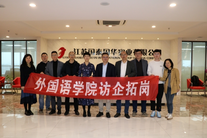 為深入貫徹落實黨中央、國務院關于高校畢業生就業工作的決策部署,根據《js3333線路檢測中心2024年大學生就業工作實施方案》要求,4月1日,外國語學院黨委書記李榮華、黨委副書記劉伯賢、英語系主任楊勇、社會資源與校友聯絡部主任程方、輔導員苗文建以及學生代表前往江蘇國泰華盛實業有限公司、江蘇國泰國華實業有限公司開展訪企拓崗促就業專項活動。