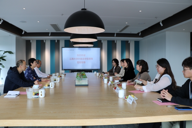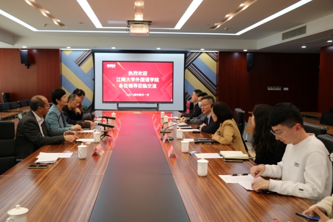 交談會后,學院一行前往江蘇國泰國華實業有限公司走訪交流。江蘇國泰國華實業有限公司董事長張斌、副總經理曾煜宏、副總經理丁岳、總經理助理施豪、總經理助理戴麗蘭參加交流會。張斌介紹了企業主營業務、企業文化、人才招聘與培養等,張斌表示:近幾年外國語學院為企業輸送了一批優秀人才,希望后期可以加強合作,共同發展。學院黨委書記李榮華介紹了學院基本情況,圍繞實習就業、人才培養進行交流,學院黨委副書記劉伯賢介紹了學院畢業生就業情況,誠摯邀請國泰國華加入外國語學院董事會。學院2023屆學生胡慧楠結合工作進行交流。