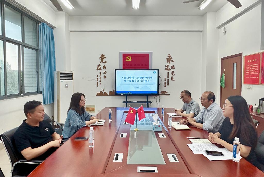 6月21日上午,外國語學(xué)院和無錫跨境網(wǎng)商商會第三期校企合作對接會在外國語學(xué)院331會議室舉行。學(xué)院黨委副書記、副院長劉伯賢、 外國語學(xué)院英語系主任楊勇、外國語學(xué)院分團(tuán)委書記顧海星、無錫跨境網(wǎng)商商會執(zhí)行會長楊春怡、組織發(fā)展部部長劉利冰和學(xué)生代表參加了本次對接座談會。
