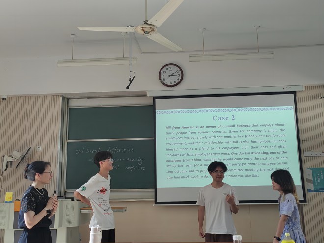 接到課程任務后,外國語學院派出了以跨文化交際、口譯和思辨表達見長的七位教師,精心設計了三個方向的課程,并從應用和學術兩個角度,為所有參課學生布置了小組討論作業。在5天的訓練營期間,老師們通過深入淺出的知識講解,豐富有趣的案例介紹,生動活潑的課堂活動,將語言學習和思辨力提升融入跨文化交流,并帶領學生們進行初步的學術探索和研究。在結營評比中,共有16個學術組,28個應用組進行了交流,他們用全英文的案例表演和分析匯報等方式,全面展示了此次訓練營的成果。
