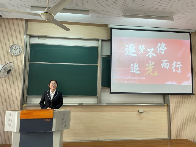 會議伊始,主持人宣讀了學校的相關文件和通知,介紹了學院本科生國家獎學金評審要求,明晰了此次國家獎學金答辯的答辯規則。經過前期個人申報、學院審核初評,共有10名學生參與此次答辯,答辯者按照抽簽順序依次上臺,并就思想品德、學習成績、學科競賽、社會實踐等方面進行答辯展示,充分地彰顯了外院優秀學子刻苦努力、勤學奮進、勇于擔當的精神風貌。整場答辯會氣氛熱烈、井然有序,在場觀摩學習的學生紛紛受到答辯人的優秀事跡所鼓舞,并給予每一位答辯人熱烈的掌聲。國獎評選答辯會不僅是學生一次展示的機會,更是一次難得的學習機會。