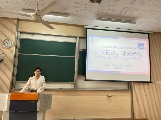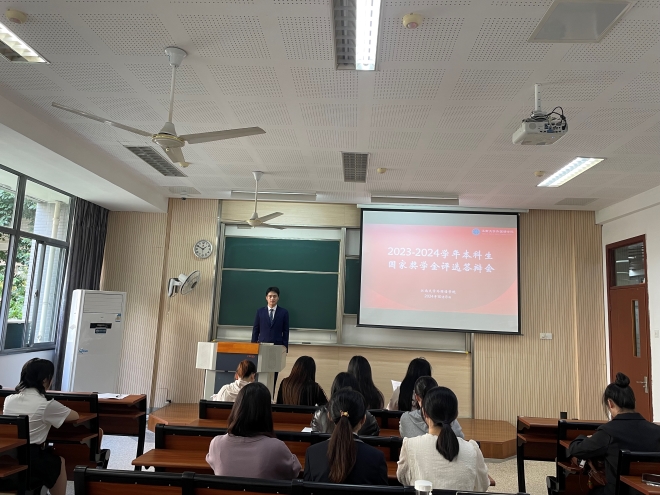 為充分發揮國家獎學金獎勵先進,樹立典范的積極作用,激勵全院學生以先進典型為楷模,推進外國語學院學風建設,同時進一步規范國家獎學金的評審工作,10月8日下午,外國語學院在二教舉行2023—2024學年本科生國家獎學金評選答辯會,學院分團委書記顧海星、輔導員苗文建、朱家燁以及班主任代表、學生代表作為評委參加評審會。