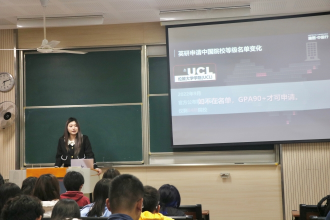 10月10日,學(xué)院邀請(qǐng)張琰分享了香港、英國和日本的留學(xué)經(jīng)歷。她分析了英國院校申請(qǐng)的難度,介紹了香港8所院校的GPA和雅思要求,以及日本大學(xué)的分類和申請(qǐng)優(yōu)勢(shì)。張琰強(qiáng)調(diào)語言學(xué)習(xí)的重要性,并提供了雅思備考建議,包括聽力、閱讀、口語和寫作的提升方法。