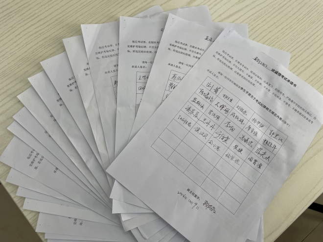 誠信考試不僅是對學業(yè)成果的尊重,更是個人品德修養(yǎng)的體現(xiàn)。班會上,各班主任詳細解讀了關于考試紀律的規(guī)定,通過剖析以往考試中的作弊案例,引導同學們深刻認識到作弊行為的嚴重后果,強調誠信應考是每位同學應堅守的底線,只有以誠信的態(tài)度對待考試,才能真正展現(xiàn)自己的學習成果,為未來的發(fā)展打下堅實的基礎。為切實發(fā)揮同學們學習主體作用,各班副班主任、班長和學習委員不僅帶領班級同學學習誠信考試的重要性,圍繞學習效率和復習計劃,為同學們分享了自己在學習中遇到的問題及解決方法,鼓勵大家互相學習、共同進步。班會結束后,各班級組織學生簽署了《誠信考試承諾書》。