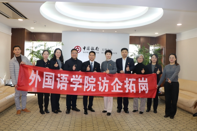 為全面深化院企合作,實(shí)現(xiàn)供需對(duì)接,拓展畢業(yè)生就業(yè)渠道與就業(yè)崗位,全力促進(jìn)畢業(yè)生高質(zhì)量充分就業(yè),1月15日,外國(guó)語(yǔ)學(xué)院黨委書記李榮華、黨委副書記、副院長(zhǎng)季王飛、副院長(zhǎng)顧琦一、分團(tuán)委書記顧海星、輔導(dǎo)員苗文建以及學(xué)生代表前往中國(guó)銀行無(wú)錫分行、新東方無(wú)錫學(xué)校開(kāi)展訪企拓崗促就業(yè)專項(xiàng)行動(dòng)。