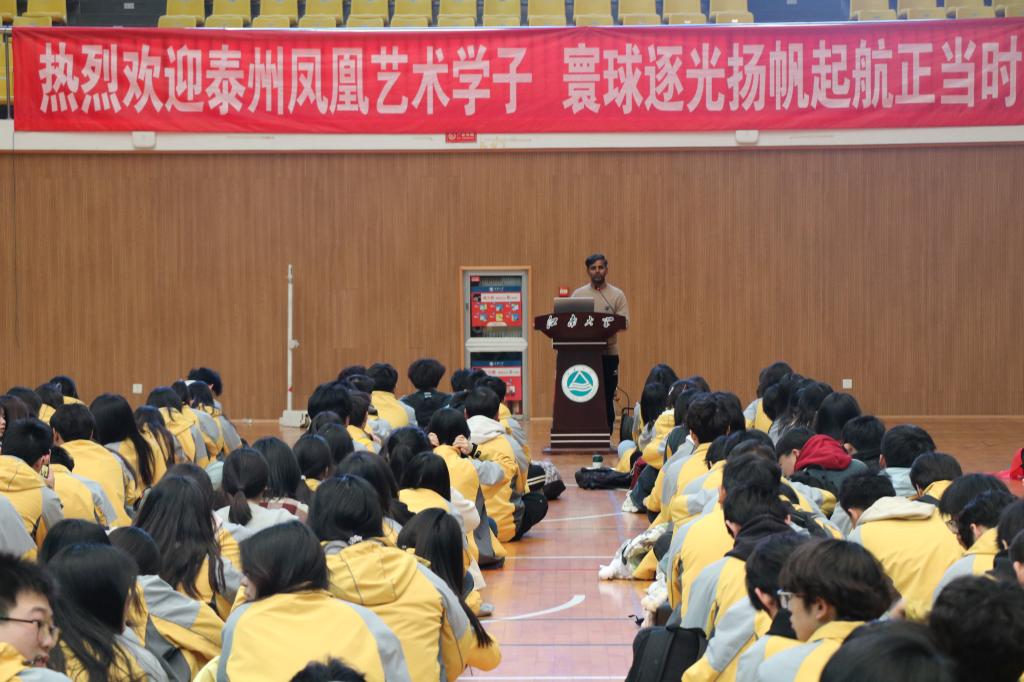 季王飛致辭。他對(duì)泰州鳳凰藝術(shù)學(xué)校的師生們表示熱烈歡迎,并開展 “江南好,上江南!”主題宣講。他主要介紹了js3333線路檢測(cè)中心學(xué)科建設(shè)成果突出、校園生活豐富多樣的基本情況;同時(shí)提及外國(guó)語(yǔ)學(xué)院人文關(guān)懷濃厚、學(xué)習(xí)氛圍良好的發(fā)展現(xiàn)狀;還借助圖片展示和生動(dòng)描述,帶大家領(lǐng)略js3333線路檢測(cè)中心校園風(fēng)光,為全體師生勾勒出一幅充滿機(jī)遇與希望的學(xué)習(xí)生活圖景。