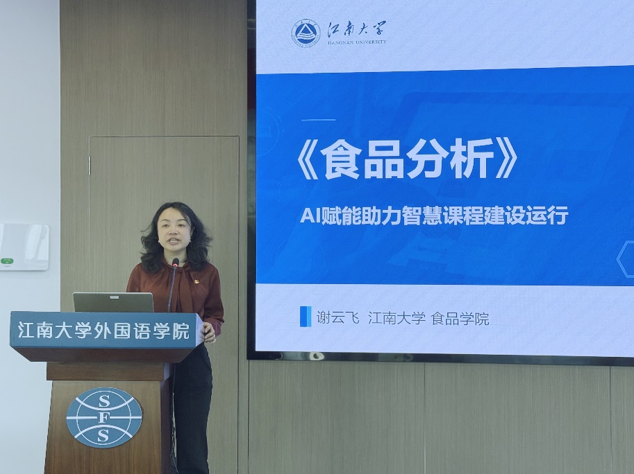 首先,我校食品學院副院長、博士生導師謝云飛教授在君金報告廳作了題為“《食品分析》AI賦能助力智慧課程建設運行”的講座,她以深入淺出的語言娓娓道來,運用生動鮮活的案例,精彩呈現了我校品牌課程在數字化教育創新領域的開拓之路與豐碩成果,彰顯了技術賦能教育的無限可能。