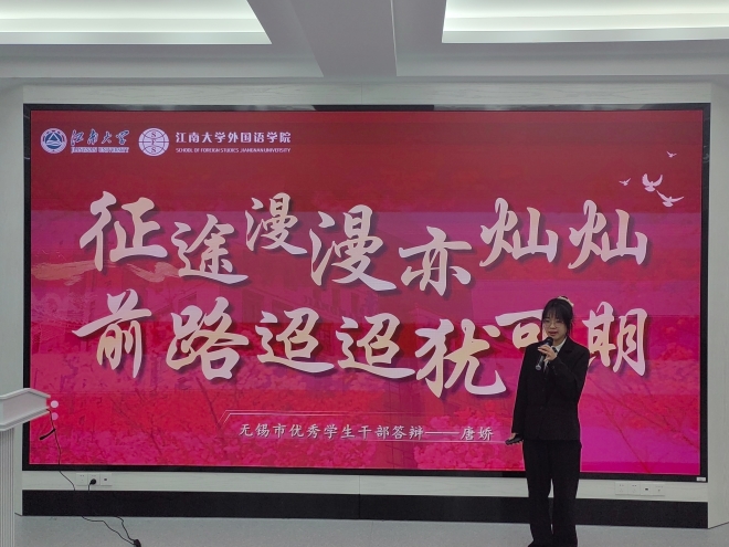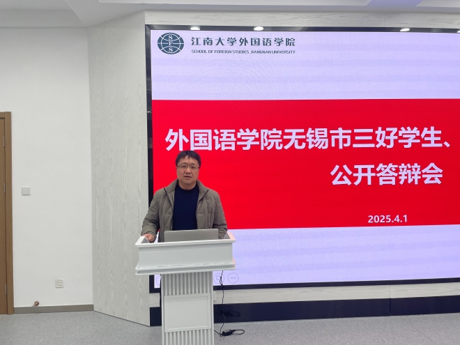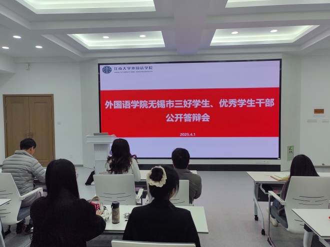 為加強(qiáng)學(xué)院學(xué)風(fēng)建設(shè),充分發(fā)揮先進(jìn)典型的示范作用,外國(guó)語(yǔ)學(xué)院于4月1日下午在A206會(huì)議室舉行“無(wú)錫市三好學(xué)生”等榮譽(yù)公開(kāi)答辯會(huì)。學(xué)院黨委副書記、副院長(zhǎng)季王飛、分團(tuán)委書記顧海星、輔導(dǎo)員苗文建、朱家燁以及學(xué)生代表參加并擔(dān)任評(píng)委,學(xué)院部分學(xué)生現(xiàn)場(chǎng)觀摩學(xué)習(xí)。