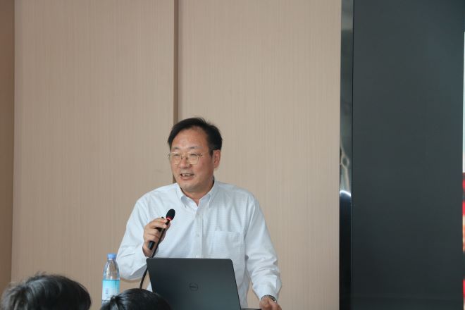 最后,日語系主任崔明姬對會議進行了總結,并再次表達了對陳世華教授的感謝。她提出語言背后的文化邏輯和情感共鳴,是AI短期內難以替代的,我們應警惕AI對思維能力帶來的惰性。外語教育必須從“工具導向”轉向“能力導向”,重點培養學生的跨文化交際能力、批判性思維和學科融合能力。
