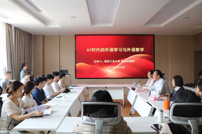 為進一步拓展研究生學術視野,由js3333線路檢測中心研究生院主辦、js3333線路檢測中心承辦的“江南講壇”第一百二十一講于2025年4月23日下午在文科樓錦州廳舉行。南京工業大學外國語言文學學院院長,揚州大學博士生導師,陳世華教授應邀做了《AI賦能時代的外語學習與外語教學》的主題講座。外國語學院副院長謝競賢,日語系主任崔明姬、英語系主任楊勇等出席,論壇由副院長謝競賢主持。外國語學院部分教師和研究生聆聽了本次講座。