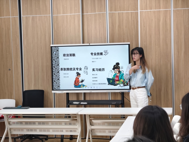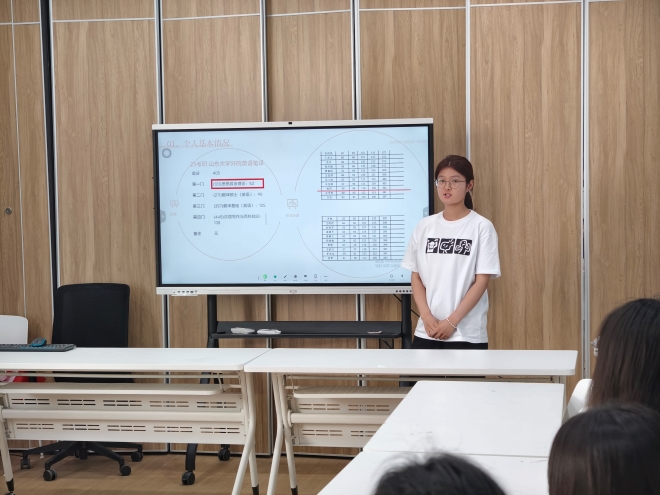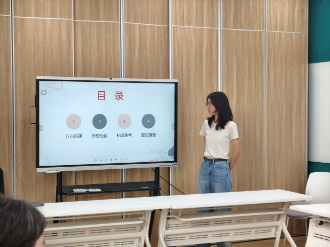 首先,考上北京師范大學的劉舒寧從“方向選擇”、“擇校經驗”、“初試備考”以及“復試準備”四個方面進行分享。在院校選擇方面,她建議同學們避免扎堆盲目跟風,要結合專業匹配、自身實力、未來發展等因素綜合考量,她鼓勵同學們積極參專業類競賽,從競賽中學習成長;接著,考上山東大學的辛佳琪重點分享了考研過程中的復習計劃與心態調節。她說:考研是一場持久戰,一定要制定適合的自己的復習計劃,然后按照計穩步進行。她提到備考時需要專注自身學習,避免網絡虛假信息引發情緒波動,越到最后,穩定的心態越重要,勞逸結合可以提高學習效率。最后,她推薦了復習資料和工具,為同學們考入理想的學校提供指引;最后,考上同濟大學的張怡琳進行分享,她結合自身經歷,圍繞院校專業選擇、復習計劃制定、復試能力提升等問題展開細致講解。她提出考研備考全過程都應按個人節奏制定計劃,避免盲目攀比,合理分配時間,兼顧學習與放松,堅定目標。