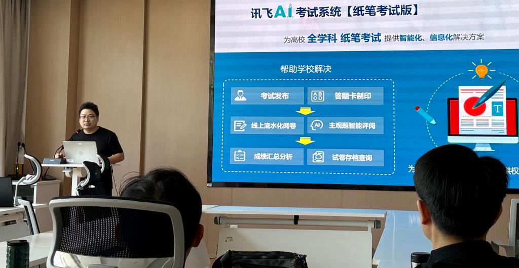 培訓中,科大訊飛專業技術人員詳細介紹了訊飛智能化閱卷平臺的功能,演示了自由組卷、智能批改、原卷留痕、學情診斷等多元場景的操作流程。借助智能化平臺,教師不僅可以提升批閱效率,還能獲得詳細的學情分析報告,更好地實現教學策略的調整。教師們認真聆聽,積極提問,就實際使用中可能遇到的問題與技術人員展開深入交流。