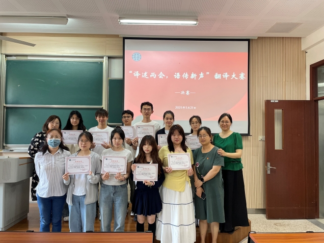 為提高我校學生英語翻譯能力,培養具有國際視野的新時代外語人才,外國語學院面向全校學生開展"譯述兩會,語傳新聲"主題翻譯大賽。5月21日下午,翻譯大賽決賽在二教2A107舉行,學院錢薇薇、王曉靜、曹丹、許蘭娟擔任決賽評委老師。