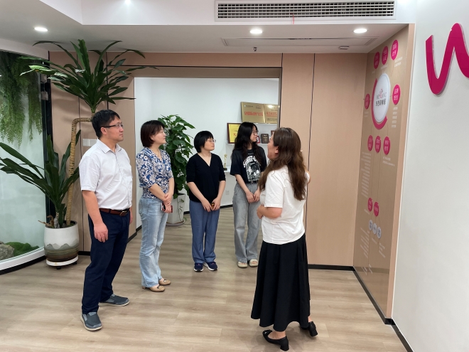 智奧(無(wú)錫)公司顧問(wèn)賴曉云,總經(jīng)理趙星星,市場(chǎng)部總監(jiān)張麗霞參加座談交流會(huì)。首先,趙星星帶領(lǐng)大家參觀并介紹了公司基本情況。座談交流會(huì)上,趙星星介紹了公司的發(fā)展歷程、主要業(yè)務(wù)、實(shí)習(xí)就業(yè)情況等內(nèi)容。她表示,企業(yè)的發(fā)展離不開優(yōu)秀的人才,近幾年企業(yè)會(huì)展方面需要高素質(zhì)語(yǔ)言人才,期待與外國(guó)語(yǔ)學(xué)院在實(shí)習(xí)就業(yè)、翻譯工作等方面展開合作。季王飛介紹了學(xué)院的基本情況,他表示:校企合作是促進(jìn)畢業(yè)生高質(zhì)量充分就業(yè)的有效途徑,同時(shí)也是對(duì)學(xué)院人才培養(yǎng)的有效補(bǔ)充,希望以本次訪企拓崗為契機(jī),雙方攜手開啟共贏共發(fā)展的新局面。