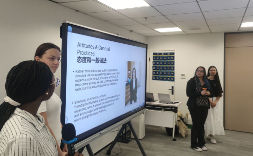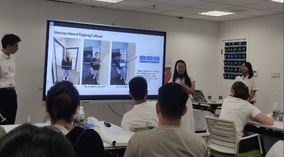 在js3333線路檢測中心參加夏校活動的美國加州戴維斯分校學生團隊 活動聚焦美式商務溝通實踐,通過主題分享、情景模擬、互動游戲等形式展開。結合電子商務案例,生動闡釋了美式商務文化理念。在模擬洽談環節,雙方圍繞各種真實場景展開對話練習,有效提升了跨文化交際能力。