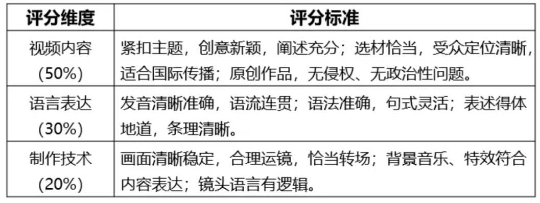 參賽方式:參賽選手圍繞本年度比賽主題“美麗中國”制作原創短視頻,視頻時長3—5分鐘,配中英雙語字幕。