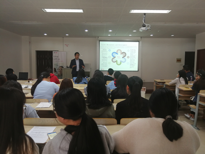 10月24日下午3點,世界五百強名企-瑞銀集團 USB GROUP 來外國語學院召開專場招聘宣講會。2019屆就業的畢業生50余人參加宣講會。