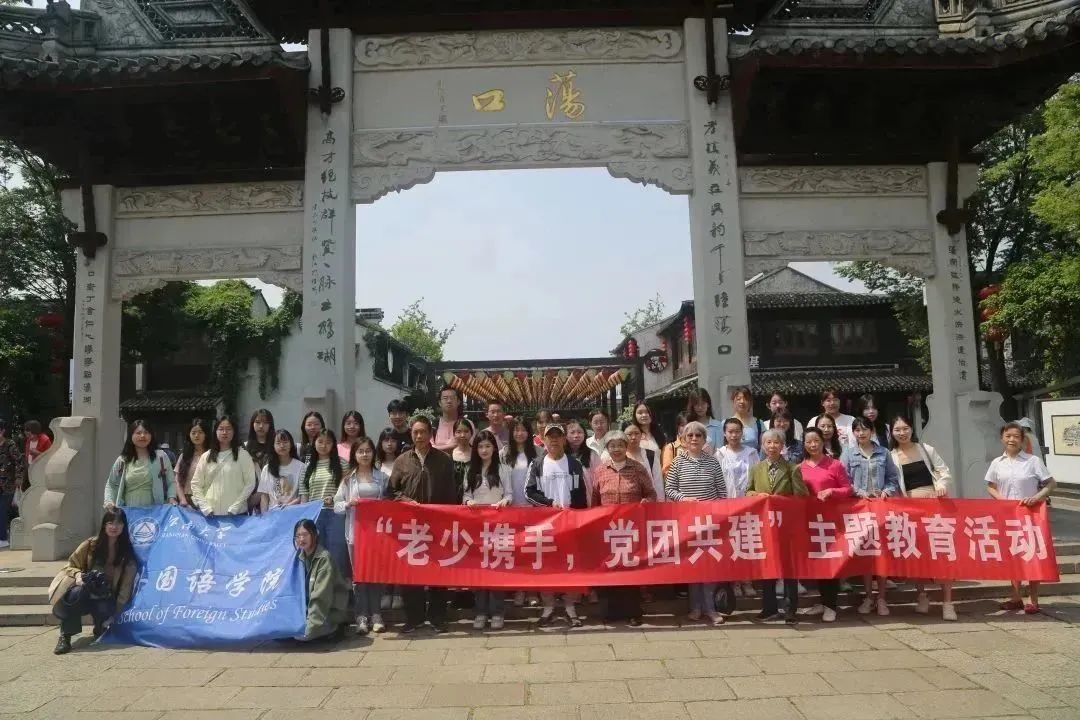 為深入學習貫徹習近平新時代中國特色社會主義思想和黨的二十大精神,傳承紅色基因,5月13日,外國語學院研究生黨支部、本科生2101團支部與機關退休第四黨支部、社橋退休黨支部老黨員共同前往蕩口古鎮開展“老少攜手、黨團共建”主題教育活動。