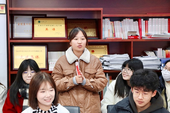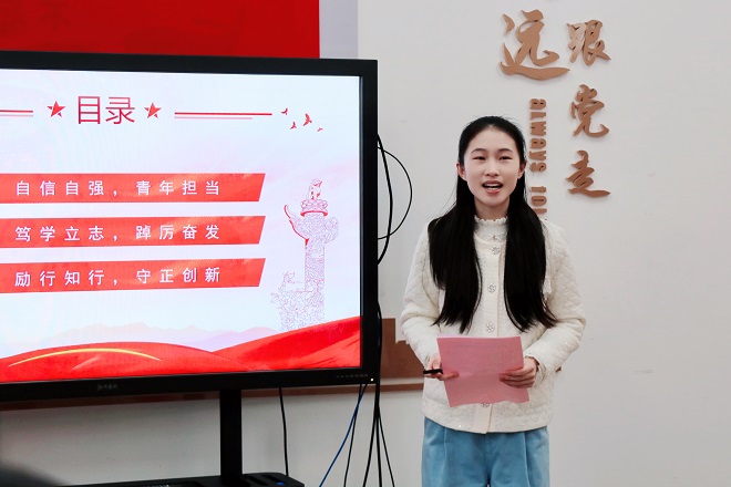 活動(dòng)伊始,優(yōu)秀學(xué)生代表高子涵圍繞“自信自強(qiáng),青年擔(dān)當(dāng)”、“篤學(xué)勵(lì)志,踔厲奮發(fā)”、“勵(lì)行知行,守正創(chuàng)新”三個(gè)方面,分享了自己在校期間的學(xué)習(xí)經(jīng)驗(yàn)及參加各種志愿活動(dòng)的心得感悟。她鼓勵(lì)學(xué)弟學(xué)妹們要繼續(xù)追尋理想,以自己的優(yōu)秀成為江南人的驕傲。