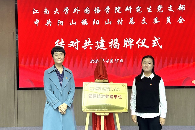 外國(guó)語(yǔ)學(xué)院研究生黨支部與無(wú)錫陽(yáng)山鎮(zhèn)陽(yáng)山村黨總支共建揭牌儀式