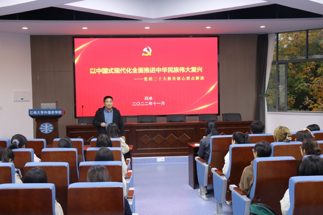 11月23日下午3:30,“奮進新征程,激揚正青春”主題信仰公開課在外國語學院君金報告廳順利舉辦。外國語學院關工委常務副主任鮑國慶老師,關工委委員吳艷敏、郭錫華老師以及分團委書記陸芳老師出席了此次活動,英語2101張聞天特稱團支部全體成員、21級團支書以及22級全體學生參與了此次信仰公開課,會議由楊婧童同學主持。