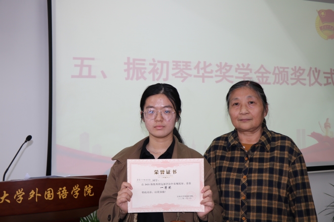 外國語學院關工委委員吳艷敏老師為團支部頒發證書