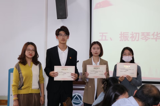 吳艷敏老師對六個答辯團支部進行了點評。她對用心準備、答辯條理清晰的六個團支部表示肯定,并就如何打造一個優秀的團支部提出建議,鼓勵各團支部不斷奮進,砥礪前行。接著,由主持人宣布評比結果,吳艷敏老師,陸芳老師,顧海星老師分別為獲獎的團支部頒發獲獎證書。