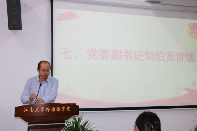會議最后,學院黨委副書記、副院長劉伯賢老師講話。他首先回顧了特稱團支部的發展歷程,對英語1904團支部的優秀表現給予了肯定,對新一屆特稱團支部寄予希望。同時,他對在場的各位團干部提出三點建議:一要學習先輩精神,感悟愛國情懷;二要加強修身歷練,保持活動熱情;三要傳承特稱精神,加強典型示范。